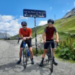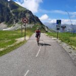 After a day in the valley it was time to head to the top of the highest paved pass in Europe, the Col d’Iseran (2,770 m). The climbing started immediately in Bourg St Maurice, heading first to the dam at Tignes, along the shores of the lake to Val d’Isere, and onto the summit. A total of 50 kms and total elevation of almost 1,900 m. And what goes up, must come down, so lunch in Val d’Isere and onto Aime for the minibus home.